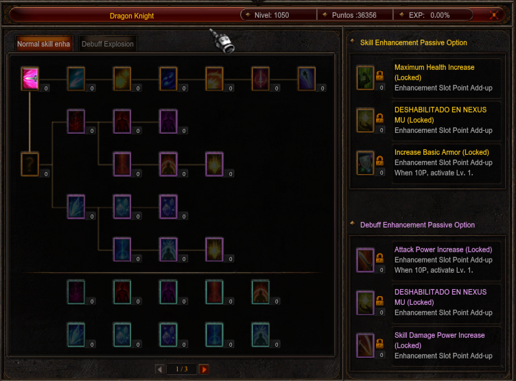 Este árbol se abre presionando las teclas "Control + A". Puedes juntar puntos para repartir en el árbol a partir de nivel 400. En Nexus MU Fast, al igual que el árbol de la 3era quest, este nuevo árbol también se puede fullear de puntos.