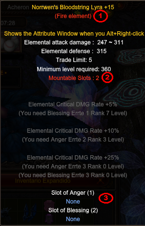 3- Los Slot que tiene disponibles - En la imagen, los slot disponibles son para Errtel of Anger y Errtel of Blessing