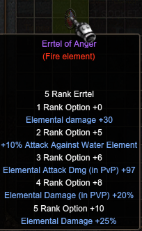 Este errtel podría ser montado en el pentagrama que mostramos más arriba. ¿Cómo sabemos eso? Pues, es sencillo, primero que todo necesitamos que el errtel sea del mismo elemento que el pentagrama, en este caso Fire. Y además, necesitamos que el pentagrama cuente con el slot correspondiente disponible. Como vimos antes, el pentagrama contaba con el primer y segundo slot disponibles (Anger y Blessing), y nuestro errtel es Errtel of Anger. Con estos 2 datos podemos asegurar que el errtel podrá ser montado al pentagrama.