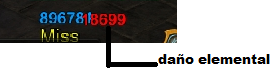 El daño elemental se visualiza en el juego al lado derecho del daño normal, como se ve en la siguiente imagen: