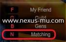 -Apretando la tecla ' N ' o seleccionado la opcion ' Matching ' en el Menu de opciones, aparecera en el menú básico para elegir party / coincidencia de guild.