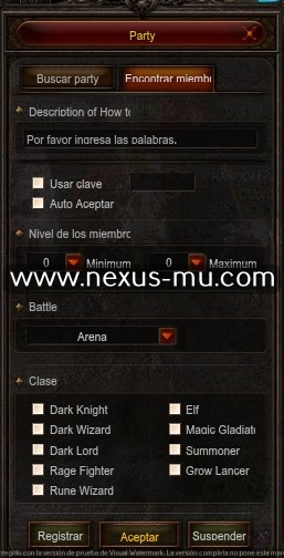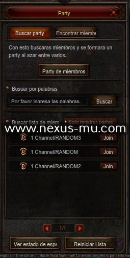 Automáticamente se va a encontrar un party que cumpla las condiciones para su personaje. |