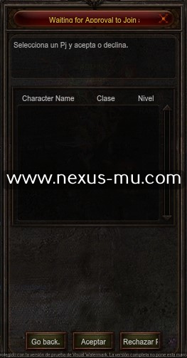 Esta ventana es para comprobar el estado de espera de aprobación para unirse a un Party. |
