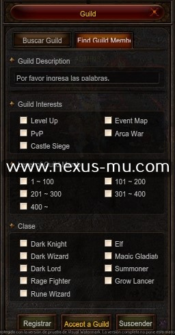 - Usted puede encontrar un miembro del Guild o unirse a un Guild.