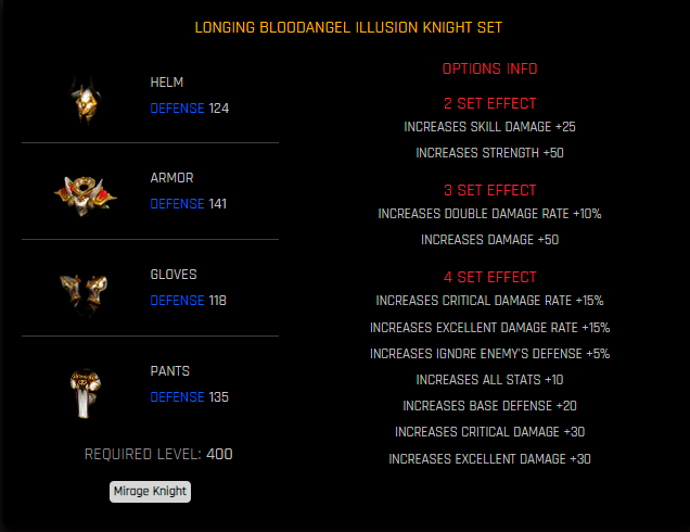 | 1 | Illusion Knight | Al crear el Personaje partes de aquí |