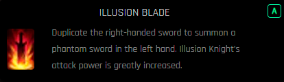 El illusion knight es un caballero que utiliza el poder de la ilusión y convoca una espada fantasma en su mano izquierda para utilizar varios tipos de habilidades de espada.