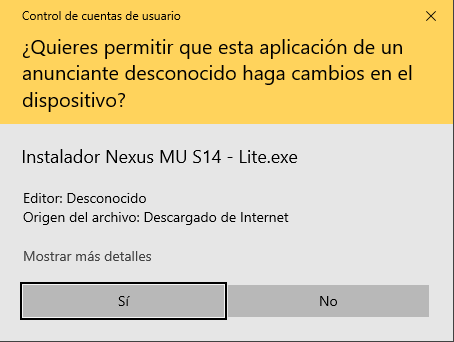 Quizás te salga el control de cuentas de usuario solicitandote los permisos necesarios, haz clic en Sí.