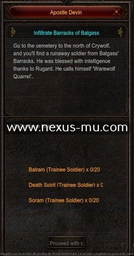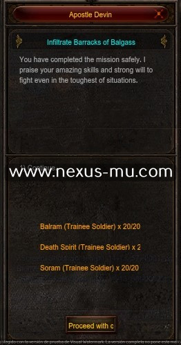 - Metodo para completarlo : Ingresa al Cuartel de Ballgass y matar 10 Balram, 10 Death Spirit y 10 Soram.