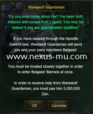- Ubicacion para ingresar : NPC Werewolf Quarrel (Localizado: Crywolf 62,239), Se deben de leer los dialogos, y confirmar el ingreso (el lider de la party debe de ingresar primero, y debes de ser sobre LVL350).