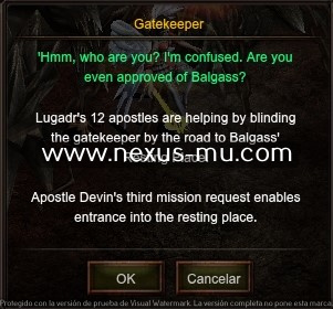 - Ubicacion para ingresar : NPC Gatekeeper (Localizacion: Barracks of Ballgass 119,168), Se deben de leer los dialogos, y confirmar el ingreso (el lider de la party debe de ingresar primero, y debes de ser sobre LVL350).