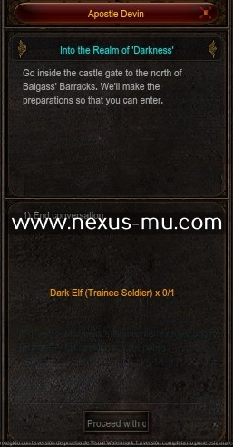- Metodo para completarlo : Entrar al Refuge of Ballgass y localizar la entrada a las Barracks of Ballgass, y Matar 1 Dark Elf (Hero).