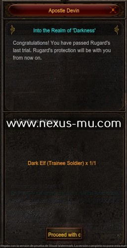 Cuadro Para Proceder a Terminar el Ultimo Quest despues de Matar una Dark Elfa